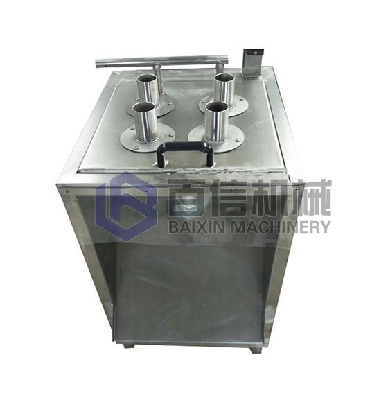 在使用山藥切片機(jī)前將機(jī)器放置在干燥、通風(fēng)的水平地面上,確保機(jī)器工作平穩(wěn)、可靠。使用前對(duì)各部位進(jìn)行檢查,緊固件是否在運(yùn)輸途中松動(dòng),開(kāi)關(guān)及電源線(xiàn)是否因運(yùn)輸而破損,料斗或料盒內(nèi)是否有異物。檢查電源電壓是否與本機(jī)使用電壓相符合。將電源軟線(xiàn)伸長(zhǎng),把帶有接地符號(hào)的黃綠線(xiàn)芯可靠接地,把其余三條線(xiàn)芯(配置單相電動(dòng)機(jī)時(shí)為兩條)分別接到開(kāi)啟式負(fù)荷開(kāi)關(guān)(閘刀開(kāi)關(guān))斷開(kāi)時(shí)的引出端子上。工作前打開(kāi)前門(mén),用手撥動(dòng)轉(zhuǎn)盤(pán)觀察是否有磕碰刀具的現(xiàn)象,如果有則將轉(zhuǎn)盤(pán)上的緊定螺栓松開(kāi),稍微向外移動(dòng)轉(zhuǎn)盤(pán),然后緊固緊定螺栓。閉合開(kāi)啟式負(fù)荷開(kāi)關(guān),啟動(dòng)開(kāi)啟按鈕,視切刀運(yùn)轉(zhuǎn)方向是否正確,從入料口觀察逆時(shí)針轉(zhuǎn)動(dòng)為正確,否則調(diào)整電源線(xiàn),待切刀運(yùn)轉(zhuǎn)方向正確后空載試運(yùn)轉(zhuǎn),各部位無(wú)異常方可試機(jī)。正常工作前先試切,觀察所切蔬菜規(guī)格與要求是否一致,否則應(yīng)調(diào)節(jié)(或更換)刀片與轉(zhuǎn)盤(pán)的高度,調(diào)整無(wú)誤后進(jìn)行正常工作。切片的厚度由片刀與轉(zhuǎn)盤(pán)的間隙來(lái)決定,通過(guò)調(diào)整片刀來(lái)實(shí)現(xiàn)尺寸變化。